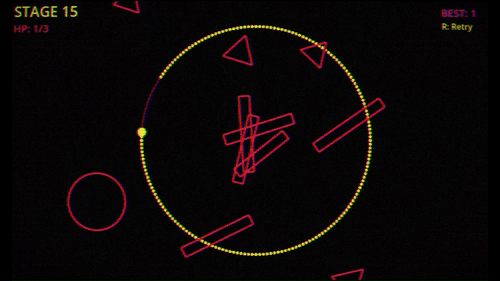 A dodge game where you move along a circular loop using the mouse wheel. Complete a full lap around the ring to clear the stage—all while avoiding incoming enemies.